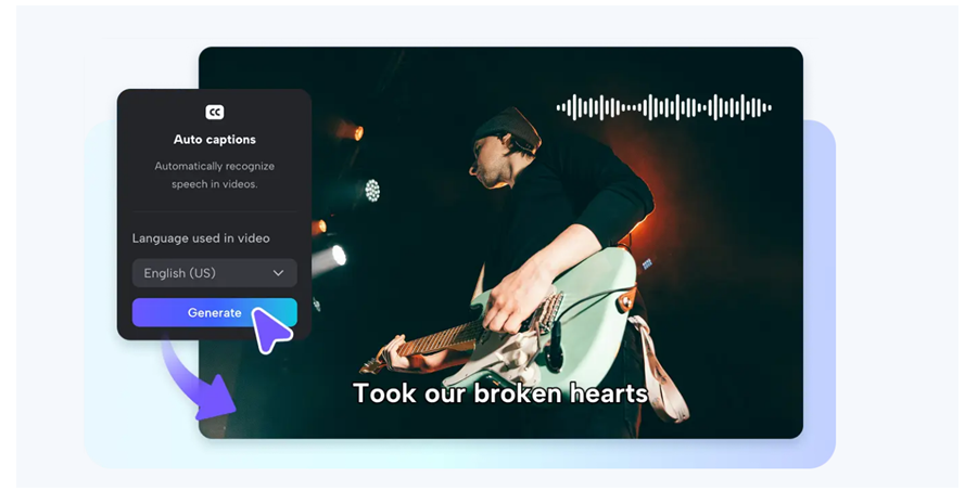 Go to the Captions menu and select Auto Lyrics. The AI instantly detects your song and creates synced lyrics. Make quick edits if you’d like, then click Export. In minutes, you’ll have a polished, high-resolution lyric video ready to post.